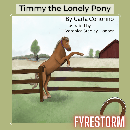 Timmy the Lonely Pony is the first book in a series that features my rescue pony, Timmy. The real Timmy came into my life in 2014. It turns out that this cute little guy, who I thought I rescued, actually rescued me. He’s never been ridden and is just my little loveable pet. He lives on a 200-acre ranch affectionately known as, The Franch (Frances’s Ranch), along with many other happy horses, including my other rescue horse, Frisco. He has met the other stars of this little tale, but the fillies featured within its pages, Chanel and Fyrestorm, reside in the paddock with the pond which appears in the story.